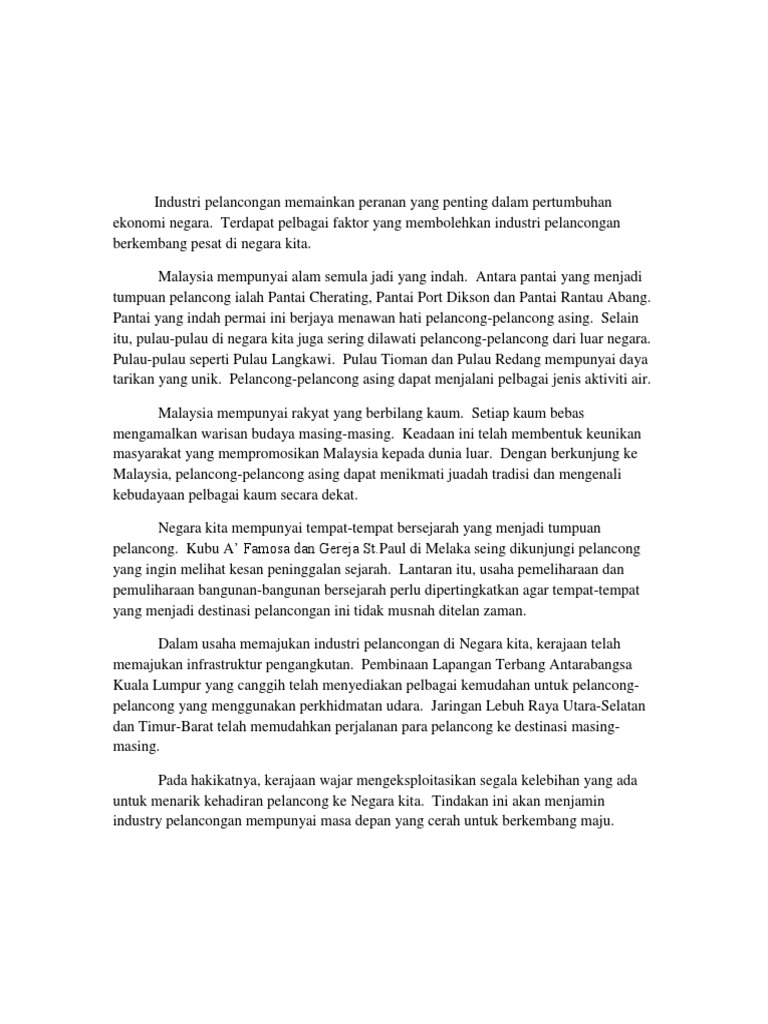 Contoh Karangan Pelancongan Di Malaysia Pt3 Spm